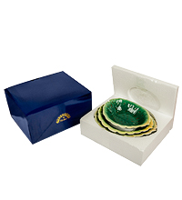 Светлая кайма волнистой формы добавляет изделию объём и прекрасно сочетается с темной зеленью основного фона. Салатники не только смогут ярко украсить праздничный стол, но и добавить к столу массу очаровательных и восхищенных взглядов гостей. Салатники удобной формы и за ними легко ухаживать. Они созданы из качественного фарфора, не тяжелые и станут прекрасным дополнением коллекции из дорогой фарфоровой посуды.