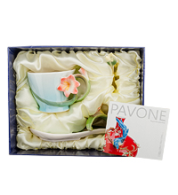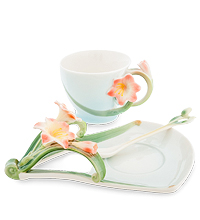 Оригинальная чайная пара «Кливия» приковывает взгляд своими необычными формами. Яркий цветок искусно сочетается с основной белой цветовой гаммой. Чувствуется нежность в каждой линии чашечки, а блюдце с нависающим цветком, сделает чаепитие приятным.
