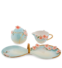 Прелестный набор ''Сакура'' составлен из двух приборов - молочника и сахарницы. Керамические изделия от бренда Pavone изготовлены во флористическом дизайне. Нежные пастельные оттенки окунут в атмосферу японского чаепития возле очаровательного дерева сакуры. Набор посуды поднимет настроение гостям и составит союз изысканности и благородства для почитателей утонченного.