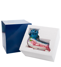 Для верха (головы и спины) художник выбрал сине-голубой градиент, который плавно, через кремовые оттенки, переходит в ярко-розовые тона. Кончики лап оформитель статуэтки решил оставить неокрашенными.