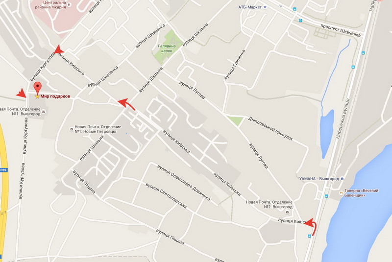 КонтактиАдреса: Київська область, м. Вишгород, вул. Кургузова 14, магазин "Свiт Подарункiв" Графік: Пн – Пт 10:00 – 17:00 Телефон: +38(073) 159-05-89 / +38(096) 050 23 81